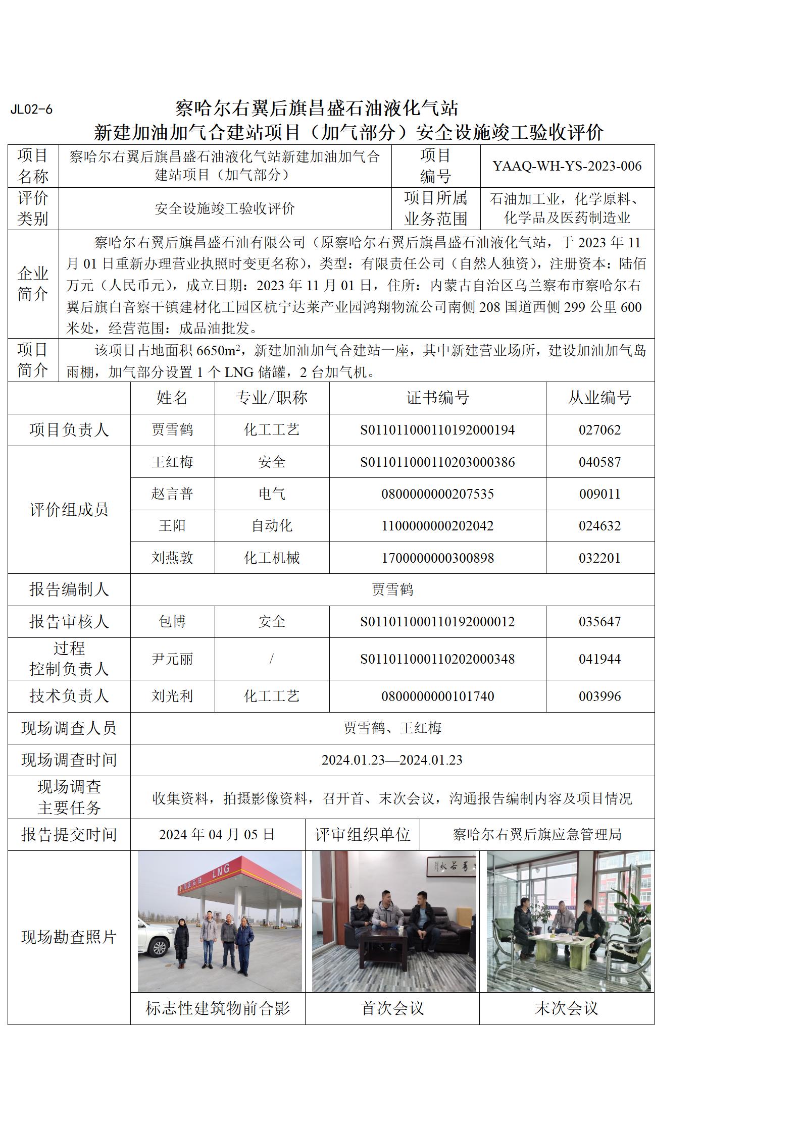 下一篇:察哈尔右翼后旗昌盛石油液化气站新建加油加气合建站项目(加油部分)安全设施竣工验收评价报告